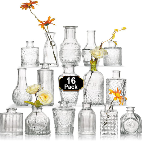 Set Vaze Mini Vintage Design, Modele Gravate din Sticla – 16, 30, 32 sau 45, diverse culori