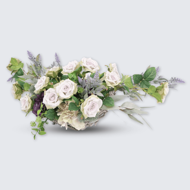 Aranjament Funerar Artificial cu Trandafiri si Lavanda – 90 cm