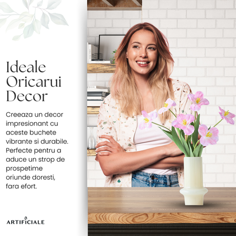 Cutie cu Flori Artificiale Mix Roz Romantic – set decorativ pentru aranjamente DIY, nunta si casa