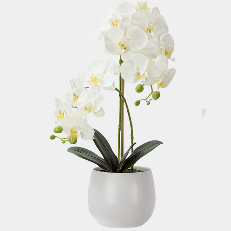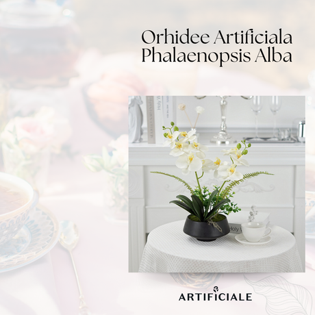 Orhidee Artificiala Phalaenopsis Alba – 45 cm, ghiveci ceramic inclus