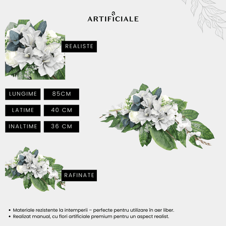 Aranjament Funerar Artificial cu Crini si Trandafiri – 85 cm