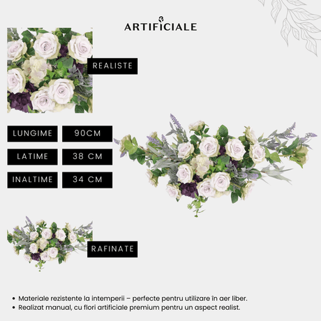 Aranjament Funerar Artificial cu Trandafiri si Lavanda – 90 cm
