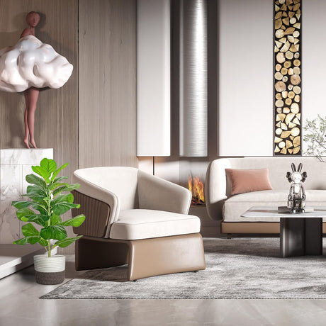 Planta Artificiala Ficus Lyrata – 60 cm, cu ghiveci din plastic si cos decorativ din bumbac