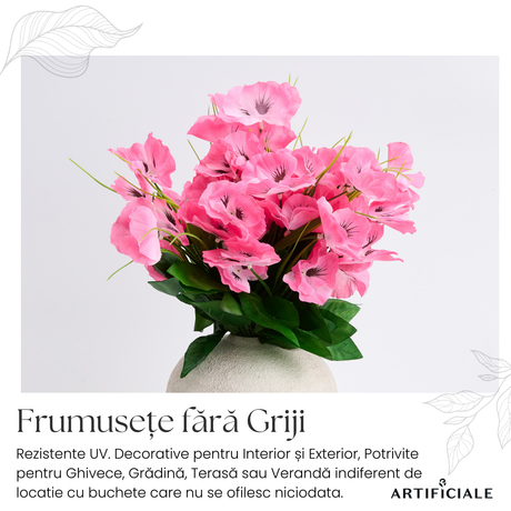 Buchet de Flori Artificiale Petunii - 5 Fire per Culoare (Roșu, Roz, Mov, Galben)